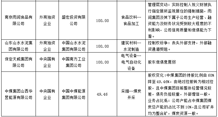 央企国企神话破灭,股权结构变化值得特别关注。一种情况是企业性质从国企变民企,比如,中国城市建设控股陷入控制权纷争,控股股东由国企变更为民企,导致其信用资质调整,外部融资受到影响;上海云峰集团债务无法偿还,其实际控制人绿地集团选择单方面解除股权关系,不予承担连带责任保证担保,甩锅意图已经十分明显。二是控股股东持股比例下降,偿债意愿变弱,比如,中煤集团山西华昱能源有限公司股权结构发生调整,中煤集团的持股比例由60%下降至49.46%,由绝对控股转为相对控股,同时,山西华昱能源的产能对中煤集团总产能的占比不到10%,并非核心子公司。还有早期即已违约的保定天威集团有限公司,其股东南方工业的偿债意愿很弱。