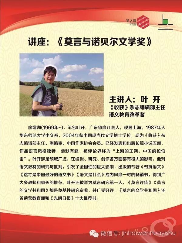 尤其是我们邀请到了国内“莫言研究第一人”、中国现当代文学博士、《收获》杂志编辑部主任、语文教育改革者叶开先生给我们带来的讲座——《莫言与诺贝尔文学奖》。