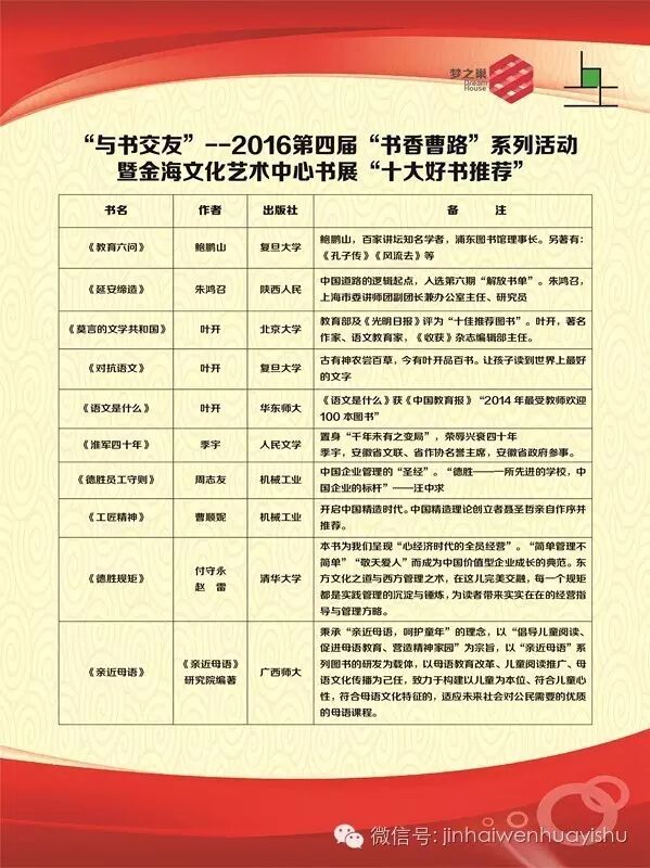此次大型展销会也是曹路镇“与书交友”——2016第四届“书香曹路”系列活动之一。活动其间,我们围绕“读书”这一主题开展各类文化活动:其中包括文艺讲座、广场文艺演出、沪剧、《金海春潮》美术、摄影、书法展览、微展览、公益视频课程《马云:创业之道》、曲艺大家唱、《百姓百人百梦“嗨行动”》第二期(2016)文艺培训报名等。