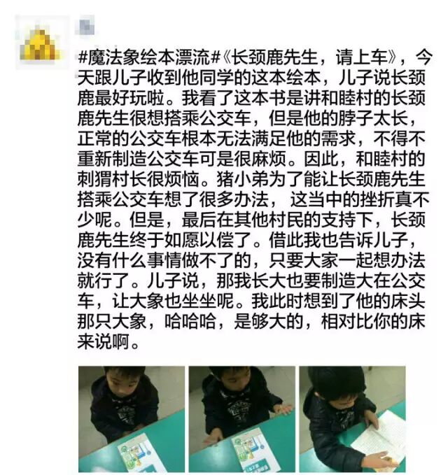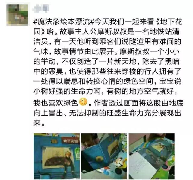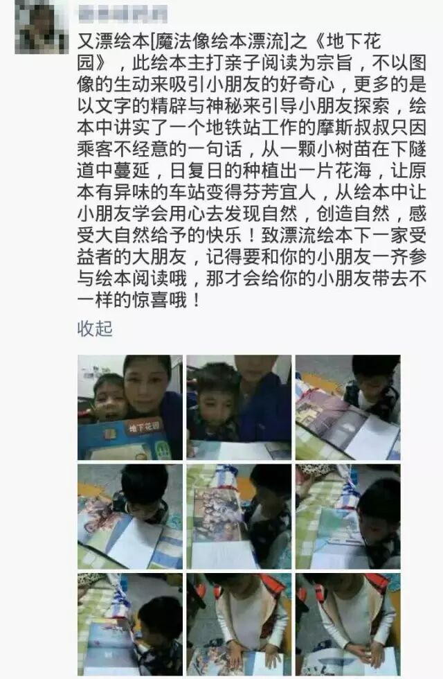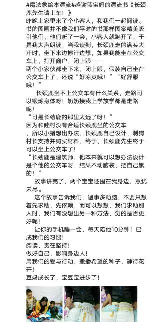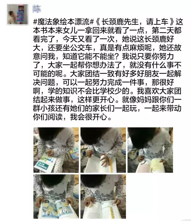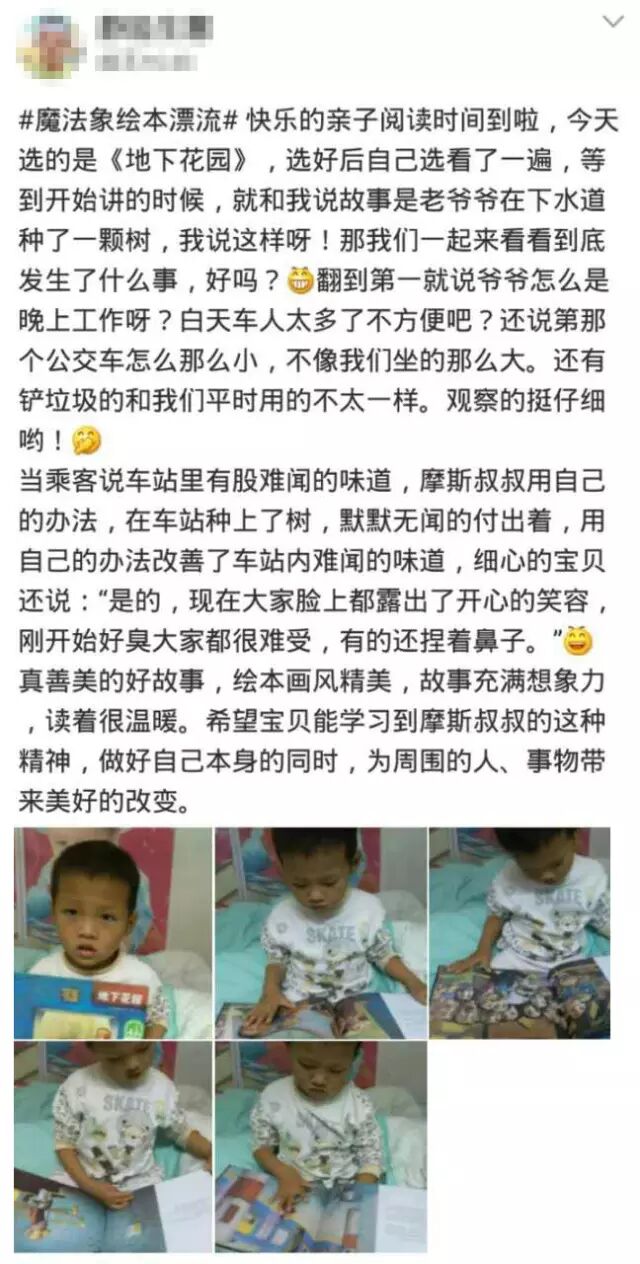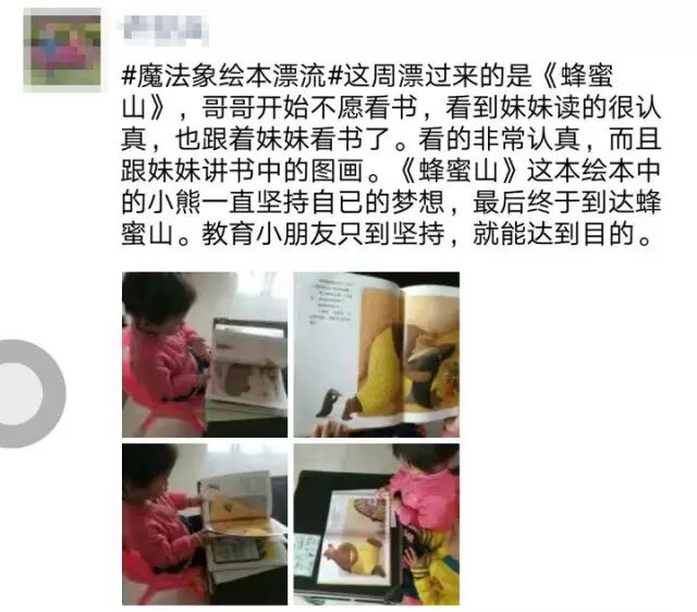 绘本漂流:通过绘本阅读传递接力的方式,旨在影响更多的家庭重视亲子阅读,让更多的孩子从小养成阅读习惯,父母和孩子一起阅读,家长和孩子共同成长;让我们一起在孩子心中种下阅读的种子,静待花开!