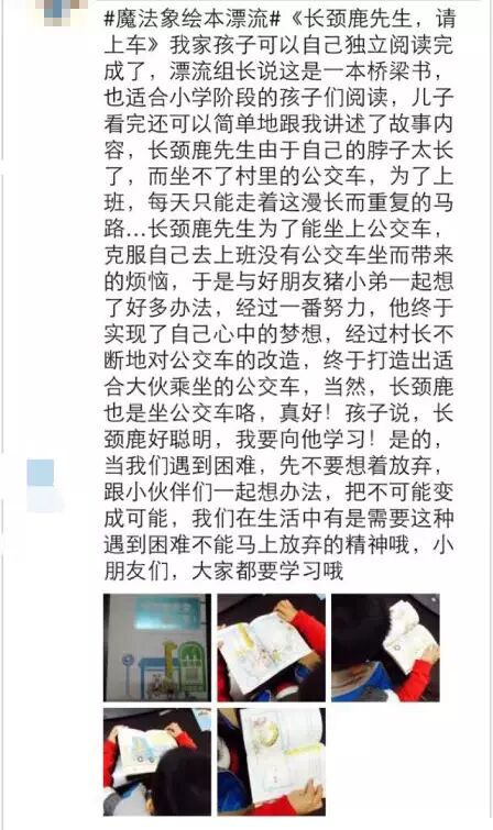 这是一本桥梁书,接漂的孩子普遍已上小学并能独立阅读,值得称赞的是,很多孩子在阅读后还用心写下了读书笔记,先看看我们小读者的阅读的认真小模样吧!