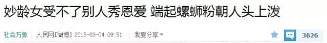 单身女难忍情侣秀恩爱,当众怒泼螺蛳粉。2015年3月5日,广西柳州的单身女士认为对面你一口我一口、卿卿我我对她笑的情侣是在嘲笑她,一气之下将剩下的螺蛳粉泼到对面女生身上,最终赔偿了对方600元损失费。
