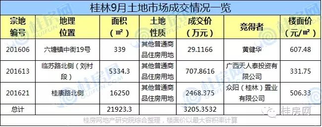 9月23日,临桂区201606、201613和201621三宗居住用地成功出让,总出让面积21923.3平米,成交价合计3205.3532万元。