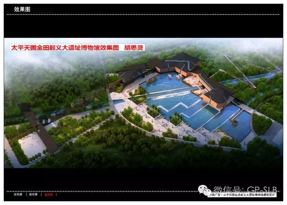 据悉,太平天国金田起义遗址红色旅游经典景区项目一期包括:博物馆、南面大型停车场、景观湖、天王广场、室外给排水工程、环湖消防道路、绿化工程等,目前,项目工程正有序推进中。