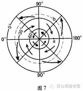 (2006年普通高等学校夏季招生考试地理江苏卷(新课程))图7是“半球近地面风带分布示意图”,读图回答13~14题。