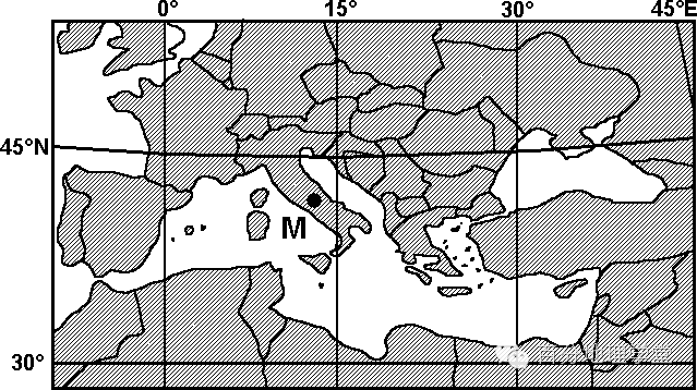 【解析】在30°N~40°N之间的大陆西岸,主要受西风带和副热带高气压带交替控制,形成地中海气候;通过海陆轮廓也可将M地大致定位为意大利的罗马附近。罗马为典型的地中海气候,夏季受副热带高气压带控制,炎热干燥;冬季受西风影响,温和多雨。