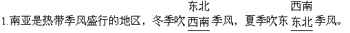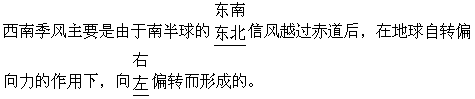 34.(1981年高考地理试题)改错题:南亚是热带季风盛行的地区,冬季吹西南季风,夏季吹东北季风。西南季风主要是由于南半球的东北信风越过赤道后,在地球自转偏向力的作用下,向左偏转而形成的。