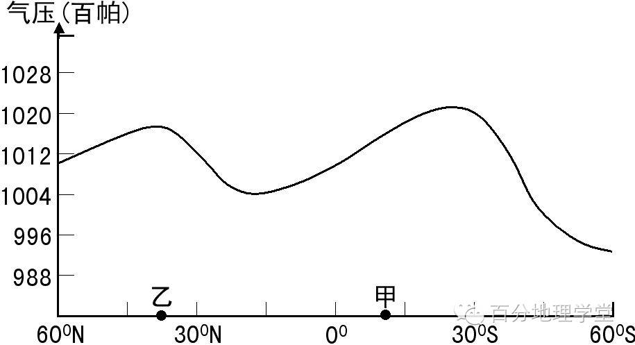 【解析】甲地位于南半球副热带高压与赤道低气压之间的南半球地区,盛行东南信风。