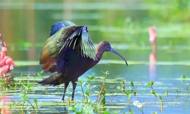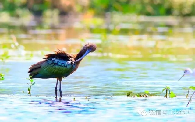 “彩鹮为鹮科彩鹮属鸟类。分布于欧洲南部、亚洲、非洲、美洲中部,该物种的模式产地在奥地利、意大利。和其他喜欢水的涉禽一样,彩鹮栖息在温暖的河湖及沼泽附近,有时也会到稻田中活动活动。它们性喜群居,经常与其他鹮类、鹭类集聚在一起活动。彩鹮把巢筑在高大的树上,每窝产卵2~5枚。雏鸟出壳后,由亲鸟用半消化的食物反刍喂养。彩鹮以小鱼、软体动物、甲壳动物、蠕虫以及甲虫为食物。”