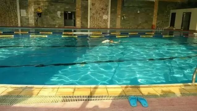 肉眼看池水应该是清澈透明见底,站在游泳池的侧边穿过水面能看到第四、五泳道线。若池底没有沉淀物,池水泡沫消散时间在15秒内,表明池水经常换,比较干净。