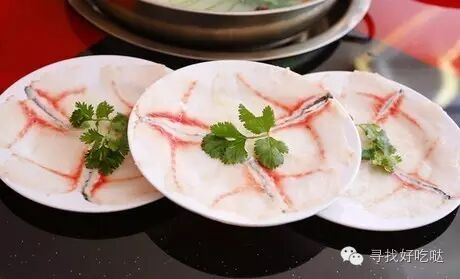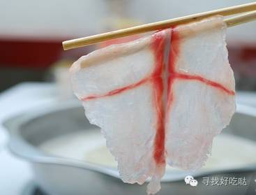 大厨的刀工十分了得,鱼片片得薄如蝉翼,薄薄的鱼片只要在锅中涮上3秒,立刻卷曲泛白,这时候吃鱼肉最是鲜嫩。