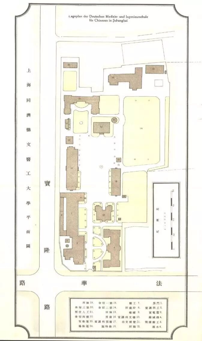 1907年,德国医生埃里希·宝隆创立德文医学堂,初期在白克路(今凤阳路)同济医院对面租赁三幢西式楼房作为校舍。