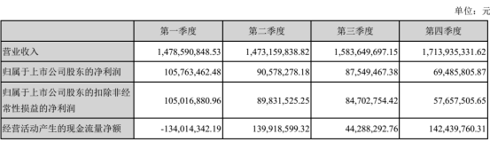 表2:分季度主要财务指标