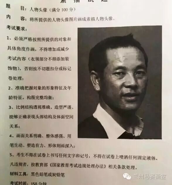 2016河北省联考统考素描考题-男老年四分之三侧面照片写生