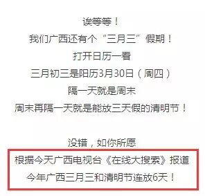 广西三月三放假时间已经确定了?还要跟清明节连在一起放6天?