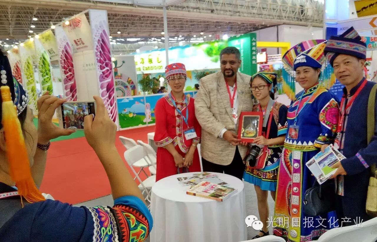 在“”图书期刊博览会上,广西某杂志编辑与尼泊尔编辑交流并合影。