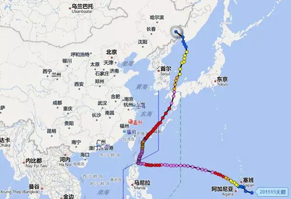 参考位置:距离台湾省台东市东偏南方向2090公里海域的海面上。