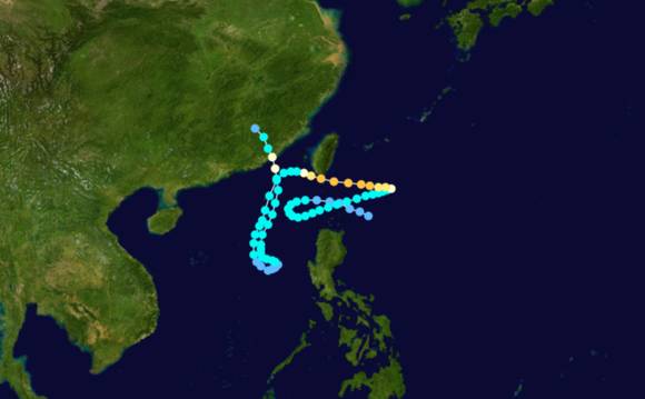 它在洋面上两次加强和减弱,三次180°转向,其路径之错综复杂甚至可以拆开看成3个圆圈和1个数字“8”。