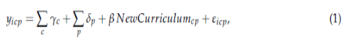 在统计数据初步分析之后,文章采用倍差分法进行基准回归,控制地区(省份P)的固定效应和同一年高中入学的群组固定效应(c: cohort)。当然文章也进一步分解新课程改革的各学年入学群体的细化效应、省份X入学群组效应、控制各省层面的变量、入学群组时间趋势变量等等。为了确保倍差分法运用的有效性,,并不存在显著差异,。考虑到各个省引入课程改革时间点的非随机性,考虑课改时间是否与该省份会影响学生态度的其他事件刚好相同,文章进一步考虑学校支出、政府和党委换届等等因素,结果十分稳健。具体不同态度问题的基准回归组主要回归结果如下图所示: