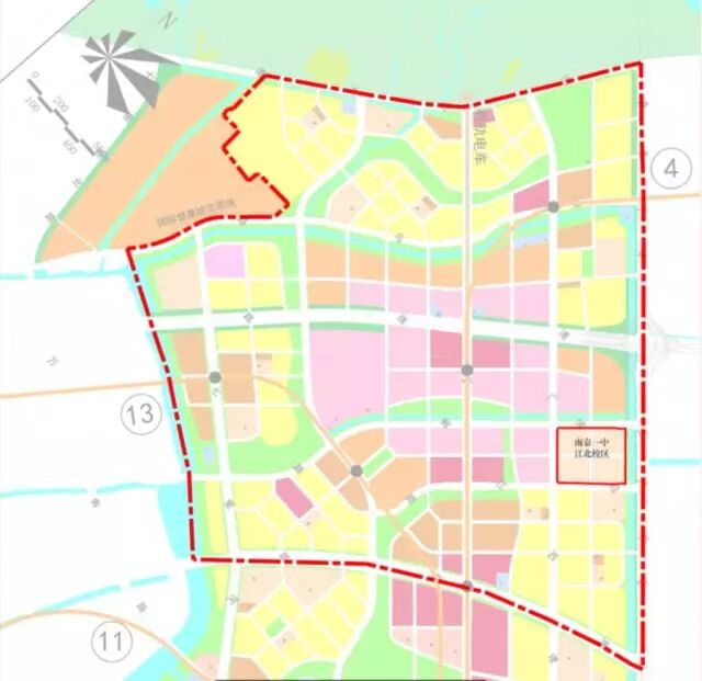 南京一中江北校区高中部位于江北核心区国际健康城范围内,东至定向河路(浦镇大街)、南至迎江路、西至广西埂大街、北至浦辉路。未来将打造成一所14轨42班的高标准寄宿制高中,以国内知名、省内一流高中的定位为标准。