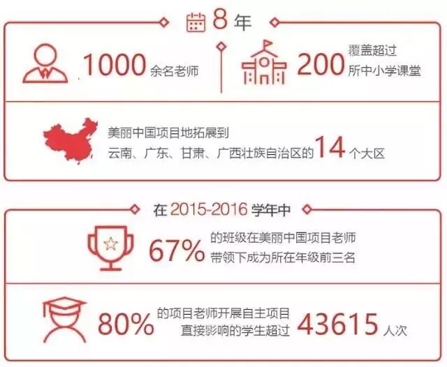 目前,美丽中国已有超过1000名项目老师,分布在云南、广东、广西、甘肃的220余所中小学,累计受影响学生超过240000人次。