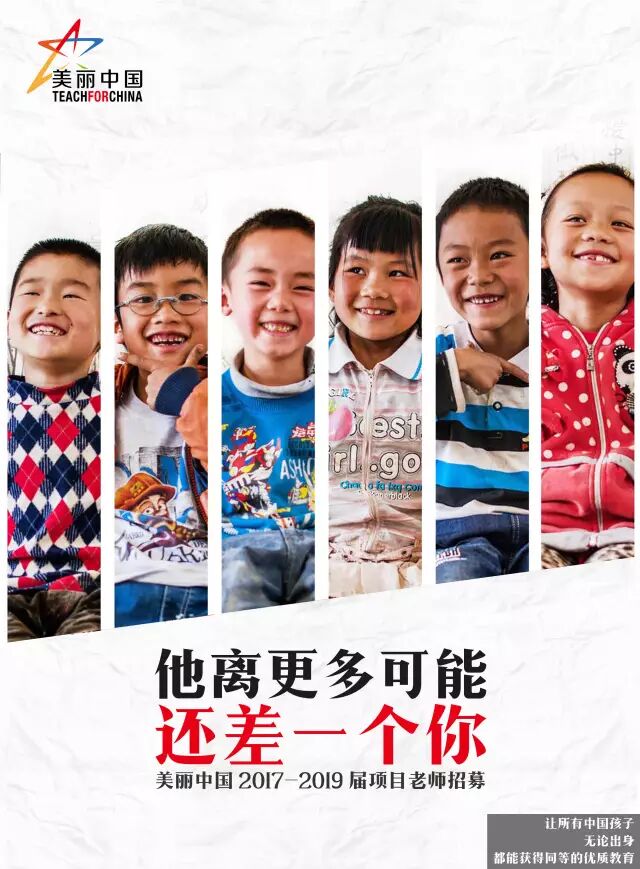 美丽中国在做支教,然而美丽中国不只是支教。美丽中国项目招募优秀青年人才,经过培训,作为全职教师输送到我国教育资源匮乏地区,从事至少两年的一线基础教育教学工作,实现学生在教育上的突破性发展;通过两年的一线教学实践,激发这批年轻人对学生和教育事业的热爱和信念,将这批杰出的教师培养成为未来杰出的教育人才。
