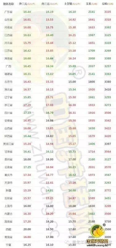 10日26日全国外三元生猪均价较昨日小幅上涨。除了港澳台西藏外,全国外三元均价最高省份为贵州省18.00元/公斤,最低省份为新疆15.19元/公斤。华东地区猪价涨跌互现,浙江省上涨0.33元/公斤,其余省市猪价小幅调整;西北地区猪价较为稳定,各省猪价窄幅调整;华中地区猪价涨跌互现,湖南省猪价上涨,河南省与湖北省猪价下跌;华北地区各省猪价均出现上涨,其中天津市猪价上涨0.32元/公斤;华南地区猪价涨跌互现,广西省猪价大跌0.41元/公斤,海南省大涨1.20元/公斤;东北地区辽宁省猪价小幅下跌,黑龙江省与吉林省猪价小幅上涨;西南地区重庆市猪价上涨0.25元/公斤,其余省市猪价均小幅下跌或持平。