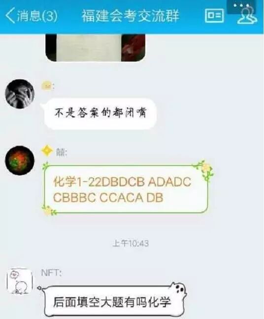 爆料者称会考进行过程中,QQ群在不断传递试题答案: