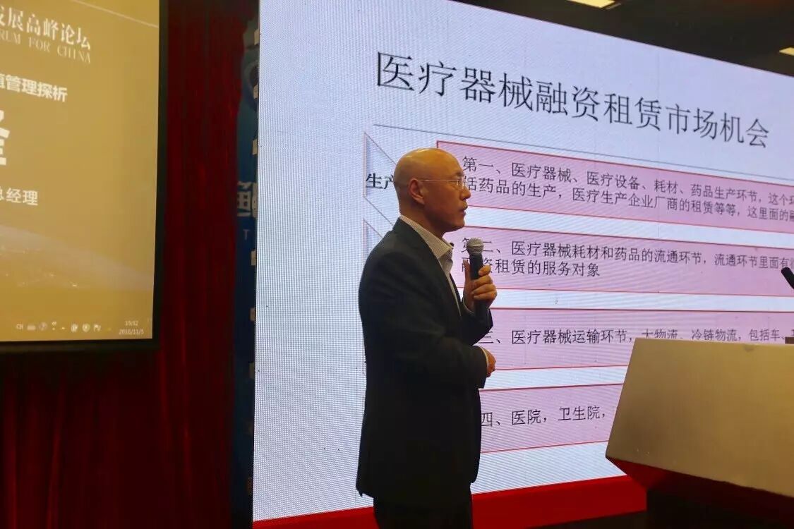 随着经济的发展、人口增加和社会老龄化,医疗器械行业已成为当今世界发展最快的行业之一。据初步统计,截止今年7月,全国医疗器械租赁额接近1500亿。:“探索医疗器械生产企业与金融租赁公司、融资租赁公司合作,为各类所有制医疗机构提供分期付款采购大型医疗设备的服务。但在我国医疗设备租赁行业的竞争比较激烈,如何做好资产运营与残值管理等问题对企业来说都非常重要。深圳金海峡融资租赁有限公司总经理于洪锋先生在本次论坛上,特别针对医疗租赁资产运营与残值管理等问题进行分析,为基层医疗产业与融资租赁创新结合做出大胆尝试与探索。
