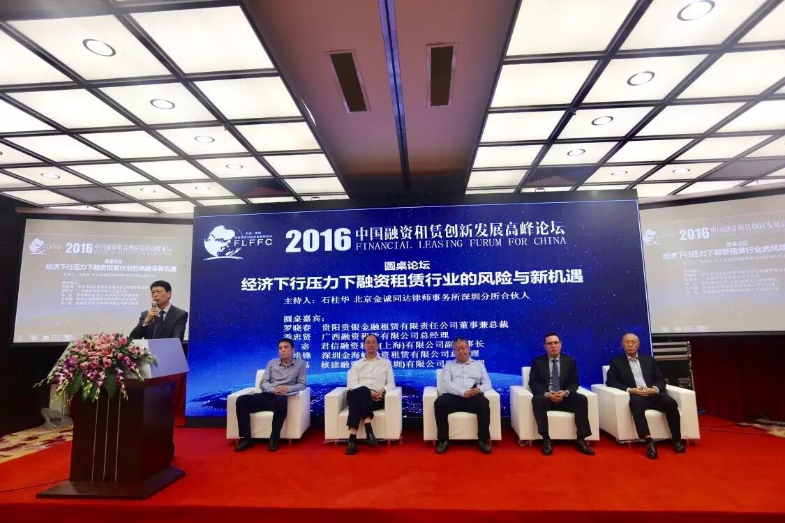 在2016年,我国经济增长的下行压力仍然很大,融资租赁行业虽然呈继续增长趋势,但同时也存在着许多的风险和挑战,如何在这样的环境下找到新的发展机遇,是整个行业都非常关注的问题。由北京金诚同达律师事务所深圳分所合伙人石柱华主持,贵阳贵银金融租赁有限责任公司董事兼总裁罗晓春、广西融资租赁有限公司总经理季忠贤、君信融资租赁(上海)有限公司副董事长邓宓、深圳金海峡融资租赁有限公司总经理于洪锋、核建融资租赁(深圳)有限公司副总经理张磊几位嘉宾,特别针对“经济下行压力下融资租赁行业的风险与新机遇”主题,共同探讨了目前经济下行压力下,融资租赁行业面临的风险与新机遇。