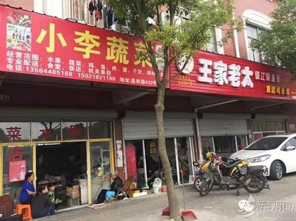位于闵行区浦江镇昌林路430号的“王家老太镇江锅盖面”和“小李蔬菜”店门口。