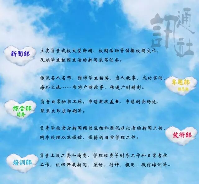 首页 | 美妆知识 | 嘿~ 听说大学生活还可以这样过! 嘿~ 听说大学生活还可以这样过! 2023-04-19 23:50:29 你有没有想象过 你的大学生活是什么样的? 是每日三点一线,宅成温室的花朵 是寻找美食与爱,享受生活 是和图书馆朝夕相处,相濡以沫 是忙碌于学生会,甘愿为同学们服务 是投身社团组织,发展爱好或特长 是参加各种各样的活动,多姿多彩 是参加各种各样的比赛,创先争优 是和小伙伴们相亲相爱,欢度时光 是勤工俭学,独立争取更好的生活 是投身诗和远方,追求心中的理想 还是把这一切纳入字里行间 永远刻在广财的记忆里把丰富多彩的广财故事留给一代又一代的广财人听我们见过广财清晨六点的模样见过晚上11点26分还亮着灯的图书馆和陪伴它的月亮记录过广财校运会气势磅礴的中国梦记录过我们广财各种各样的新面貌定格过舞台上的婀娜多姿定格过你冲向终点那一刻的欣喜若狂实地采访过暑期挂职、甘愿奉献的同志出差摄影过中国—东盟财税论坛专家学者参观钦州中马产业园和院报编辑部的小伙伴联欢共度中秋周末两个校区的同志聚在一起加强交流诸如此类的故事我们还经历过很多 官网、校报和微信,是我们的平台 相机、录音笔和办公室是我们的部分保障 而记好你和你的故事 是我们的终极目标 如果你有新闻理想这里是你培育理想的沃土 如果你有其他理想这里是你提高各种能力的绝佳摇篮 如果你不知道如何实现你的理想这里可以让你发现优秀的人如何追梦 如果你还没有理想这里可以让你发现自己的各种可能性 我们是大学生通讯社为广财执笔和定格为你记下你在广财的故事 等你一起提高通讯技能一起来过充实的大学生活一起来为广财留下点儿什么我们的部门如果你愿意可以立即联系我们QQ:2125890263QQ群:581796609-明秀 575144459-相思湖微信:广西财院大通社-gxufetxs微博:广西财经学院大学生通讯社办公室:一号行政楼2楼208室 -明秀 正门行政楼3楼333室 -相思湖初试将在国庆之前进行具体的时间、地点将于各平台公布敬请关注哟无论你爱摄影、爱写作、爱思考、爱社交、爱独当一面、还是爱团队合作快来和我们一起提高通讯技能一起记录丰富多彩的大学生活! 欢迎关注记录广财故事的大学生通讯社
