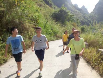 刚来到广西时,就看到了广西巍峨的高山,一直想着那种会当凌绝顶,一览众山小的感觉,今天终于有机会尝试,饭后我们像高山发起冲击。大家在山脚下信心满满,志在登上最高峰。在孙老师的带领下,我们启程了。