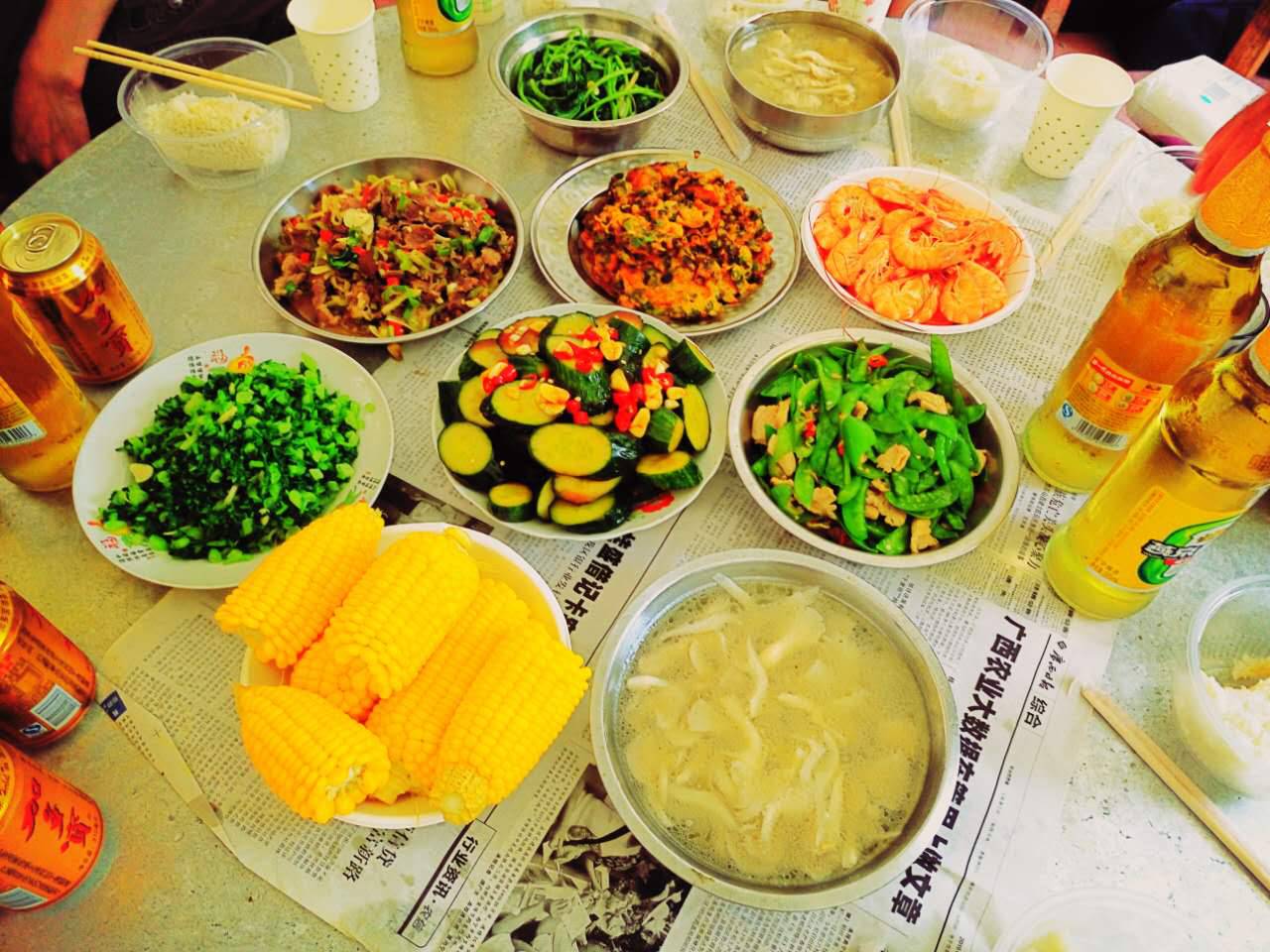 此次由谢老师(居家好男人)掌控厨房,我们坐等谢老师的美食,当看到一桌佳肴的时候,我们对谢老师的崇拜又上升了一个层次,战斗力十足,很快就被我们消灭干净。