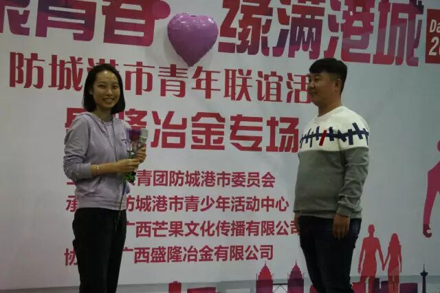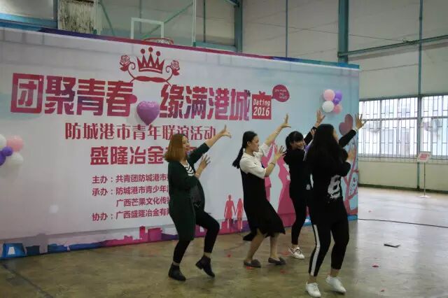 12月11日下午,由防城港市委主办,防城港市青少年活动中心、广西芒果文化传播有限公司承办,广西盛隆冶金有限公司协办的“团聚青春 缘满港城”2016年第五期防城港市青年联谊活动在盛隆冶金公司室内体育馆上演。此次活动吸引了来自该企业和我市其他行业的近100名单身男女青年前热情参与其中。在这个周末,共赴浪漫之约。