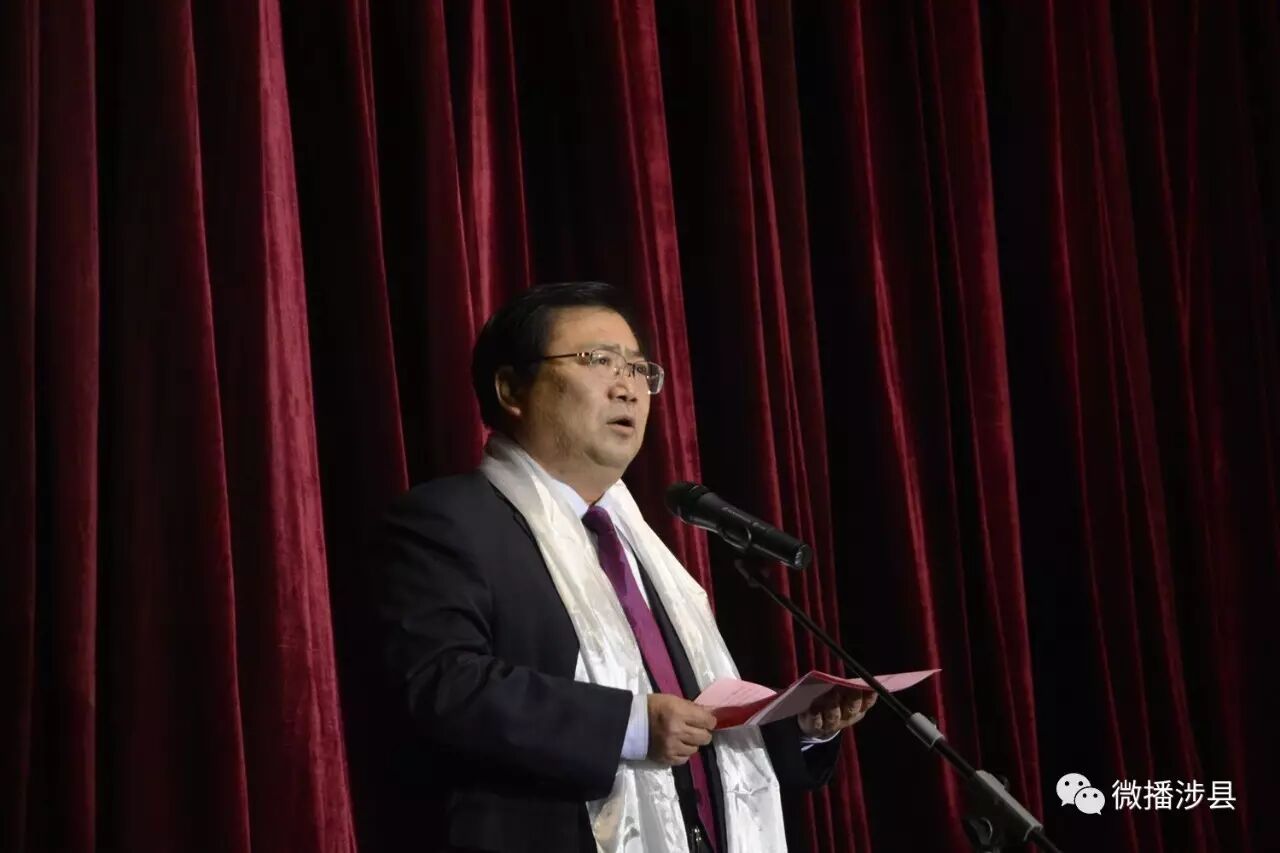 涉县援藏干部、自治区阿里地区札达县县委常委、政府副县长付学亮代表札达县发表讲话。