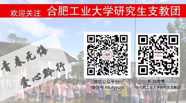 点击图文上方标题“合肥工业大学研究生支教团”关注我们 也可扫描下方二维码 关注公益,关爱社会