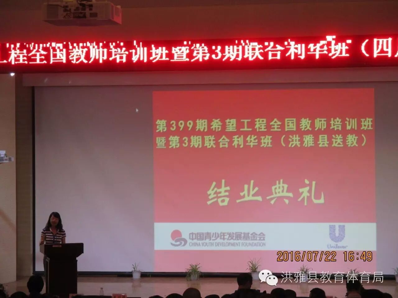 7月18日—22日,由中国青少年发展基金会、联合利华集团、洪雅县教体局共同举办的“第399期希望工程全国教师培训班暨第3期联合利华班(洪雅县送教)”活动在洪雅县实验小学成功举办,全县近300名中小学教师踊跃参加培训。