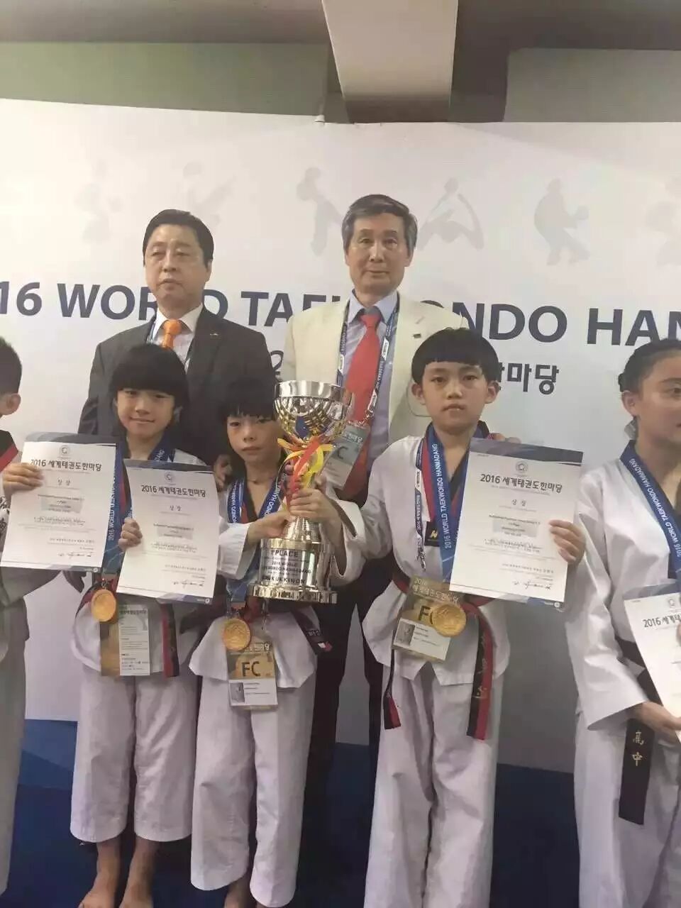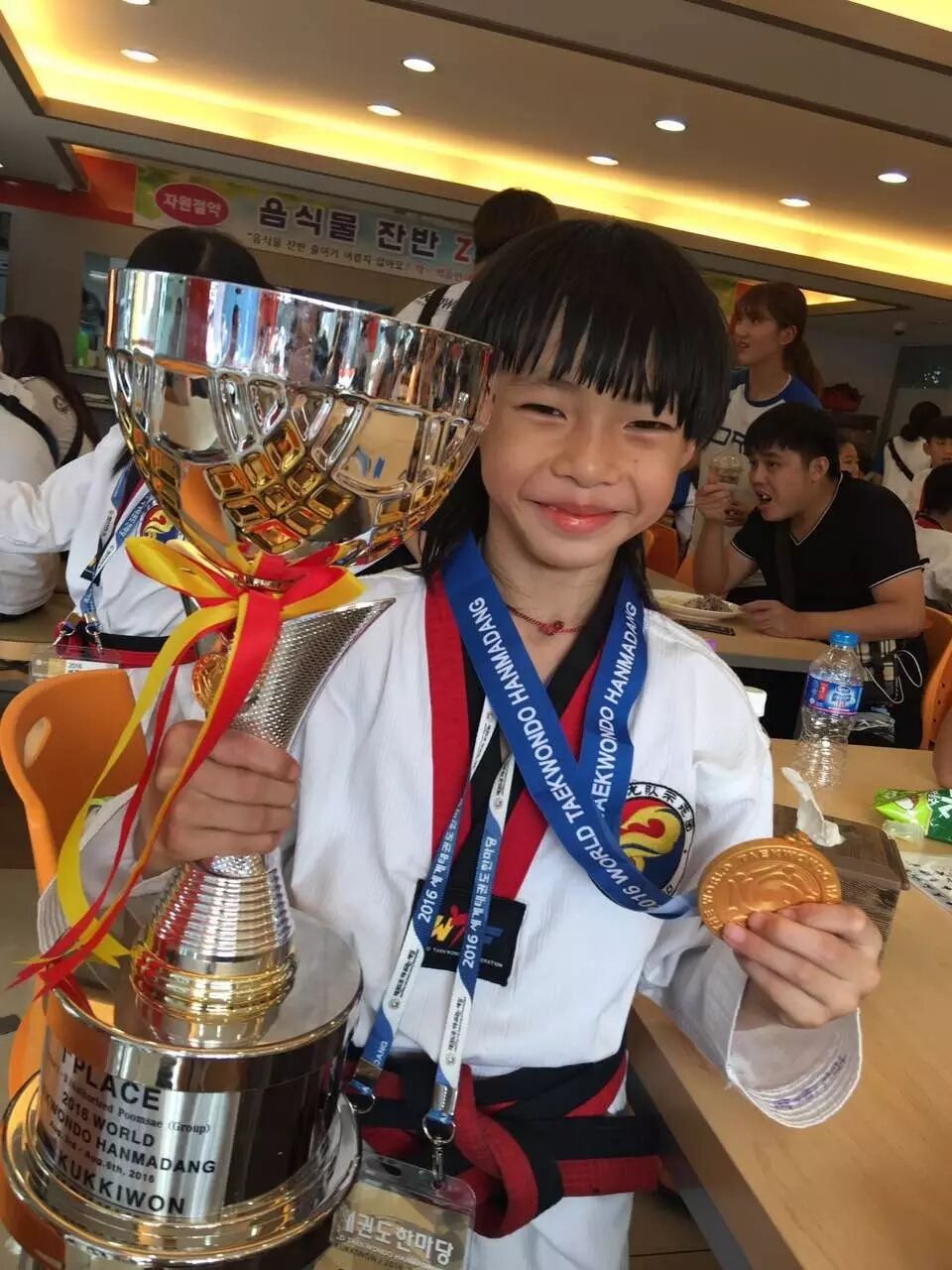 据了解,韩国HANMADANG每个选手只能参加一项比赛,且全球18周岁以下不分年龄、性别,只有一个比赛,即3人团体赛。经过7轮激烈角逐,莫侦健他们脱颖而出,击败日本、菲律宾等各国强手,获hanmanang三人团体冠军,而他们的平均年龄只有9岁,其中莫侦健只有8岁。