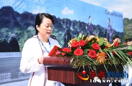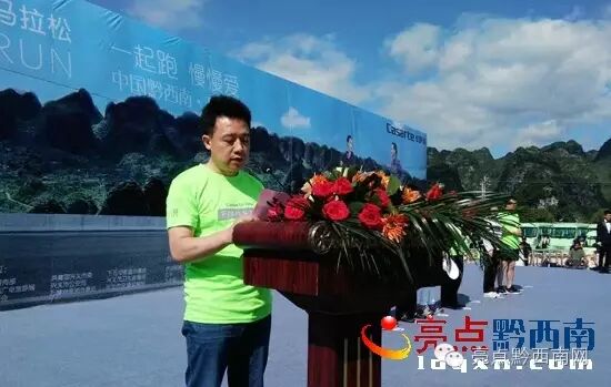 黔西南州委常委、、州委宣传部部长陈国芳宣布卡萨帝家庭马拉松万峰林站活动正式开始。
