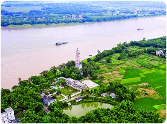 塔下为浔江杨急滩,水下暗礁遍布,江流汹涌,波澜起伏,回环激荡,塔影摇曳,此即有名的“东塔回澜”一景。