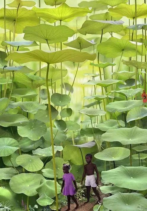 非洲儿童与巨大的荷叶