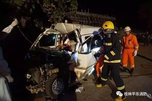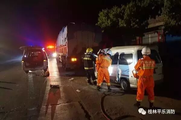 2017年3月6日凌晨4时32分,在广西桂林市泉南高速严关路段发生一起交通事故,接到报警后,消防官兵迅速赶赴现场处置。