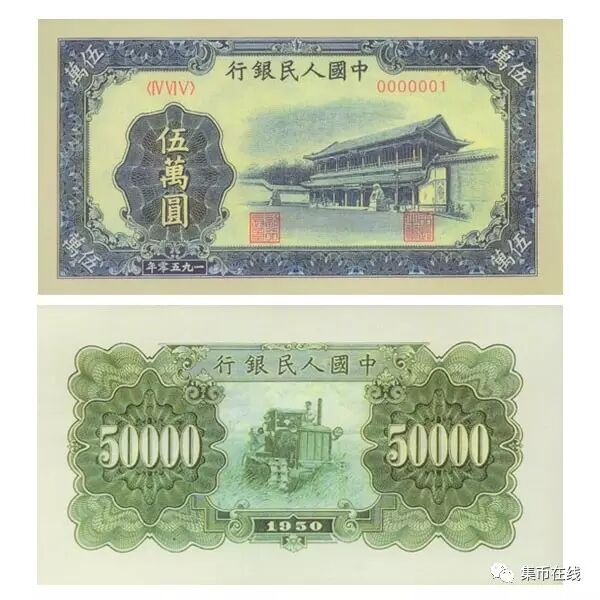 原来,新中国成立之初,面对的是满目疮痍百废待兴的国家,通货膨胀急剧发展的经济,为了解决这些棘手的问题,我国央行发行了第一套人民币,力挽狂澜。所以说第一套人民币五万元实际上不仅承载了新中国初期的历史,更为新中国经济恢复立下了汗马功劳。“之所以采用万元面值,是根据当时的现状,,发行的‘法币’面值都很大。”