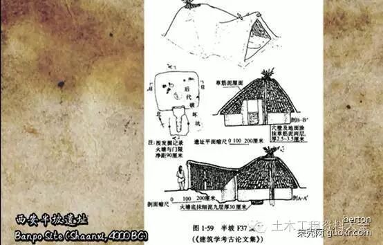 后来人们在屋顶的树枝边上用泥做墙,是房屋更加坚固、防火、保暖,进而形成固定的形式即“挖坑,坑上用树枝做屋顶”。后来坑越来越小,屋顶越来越大,直至在地面上之间搭屋顶,甚至出现了屋顶与墙的分离以及先将地面用火烧后再搭建建筑。用树枝做墙,在外表面涂泥。