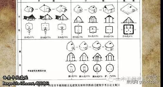 同一时期的西安半坡仰韶文化遗址中,发现了完整的村落。村落中的建筑代表着“穴居”的发展形式。习惯了在洞穴中居住的人来到平原地区,在平原上挖一个坑,用树枝搭建屋顶,做出类似于洞穴的效果。