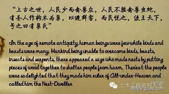 《韩非子 五蠹(dù)》中写道:“上古之世,人民少而禽兽众,人民不胜禽兽虫蛇。有圣人作,构木为巢以避群害,而民悦之,使王天下,号之曰有巢氏。”在上古时代,人很少但是飞禽走兽很多,人们忍受不了动物的侵扰,有圣人将房子建在树上,是人们免受野兽骚扰,于是大家很高兴,拥立圣人为王,称呼圣人为“巢氏”。