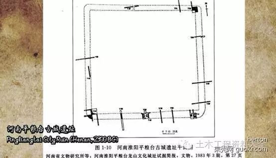 在平粮台遗址中发现了形成了比较完整的城市。用夯土做的城墙以及城门,城门旁的房屋是土坯为墙,墙上涂有白灰,同时地面用火烧过,距地面30厘米的地方还埋有排水管。