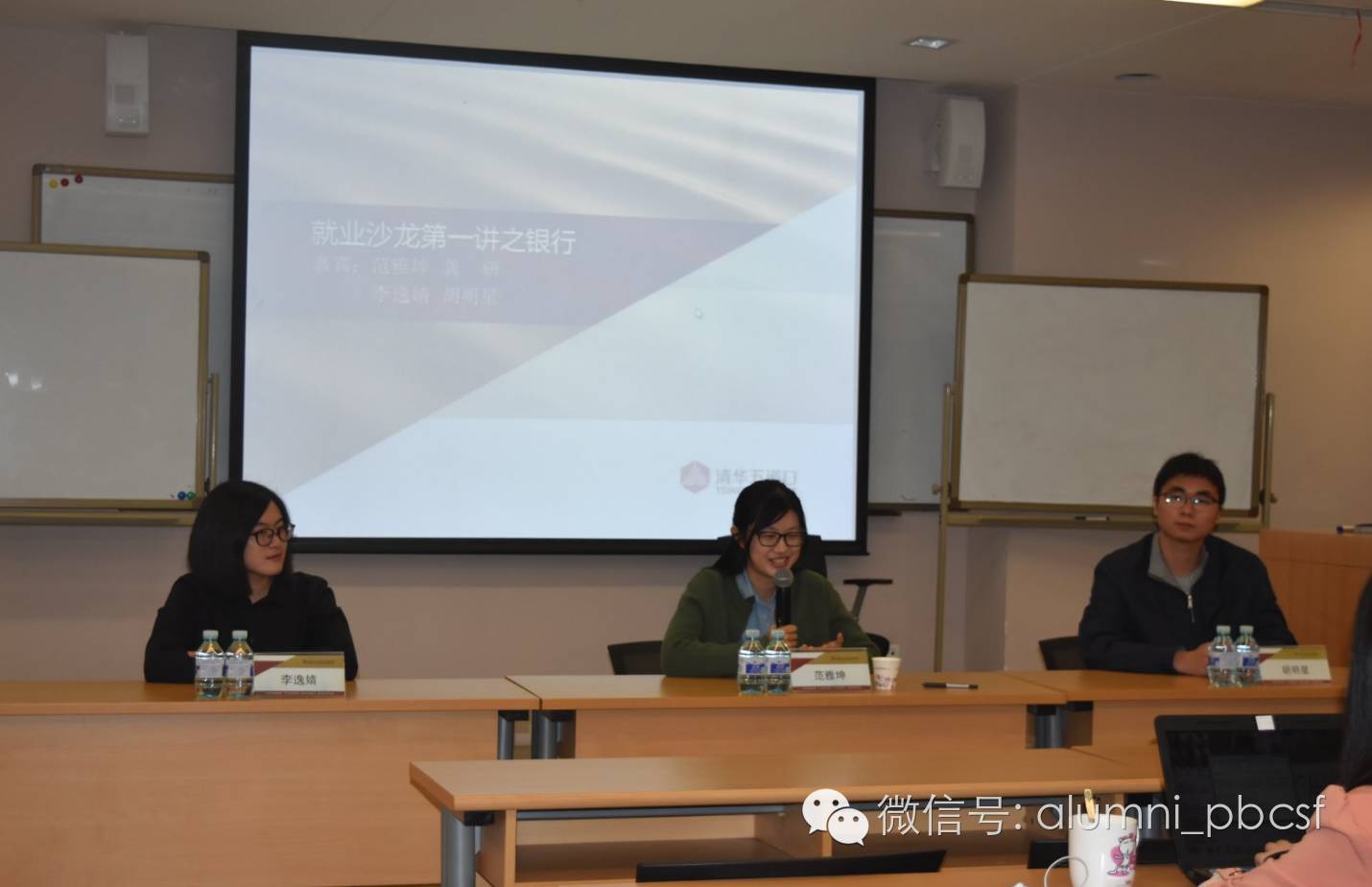 10月16日晚,“就业沙龙——银行专场”在学院1-306教室举行。受邀到场的嘉宾均毕业于五道口金融学院,其中包括:就职于建行总行的2013级硕士校友范雅坤、龚研,就职于农行资管的2014级硕士校友胡明星及就职于光大总行的2014级硕士校友李逸婧。经过短暂热场后,龚研首先回顾了自己的职业发展历程;李逸婧则围绕其就职的光大银行总行风控部门进行了介绍;范雅坤详细介绍了她在建设银行总行的求职经历及面试流程;胡明星则对农行总行资产管理部门的业务内容进行了讲解。接下来的互动环节中,嘉宾们介绍了银行总行的工作内容与状态。李逸婧表示,银行的固定收益部门投资风格较为稳健,主要关注利率债、国债、信用债等,且银行工作稳定,讲求忠诚度。龚研则向同学们介绍了银行就职前两年在基层挂职锻炼的历程与体会。在求职面试方面,范雅坤建议同学们重视学业成绩,也要多承担学生工作,在实践中培养自身的素质。胡明星就农行面试的基本流程进行了分享,他建议同学们重视英语,并通过相关实习学习分析框架、方法论、基本面、估值、市场流动性等基础知识。