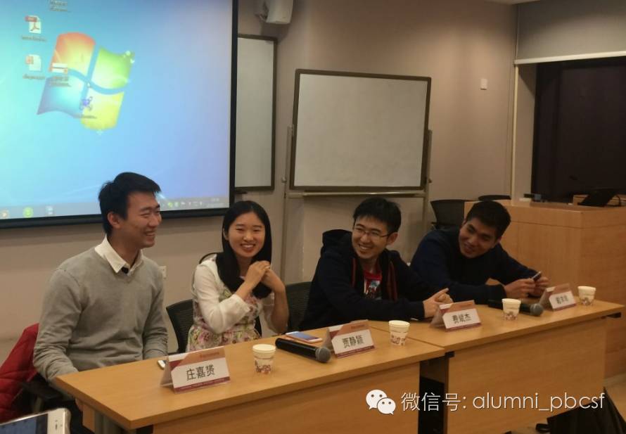 10月23日晚, “就业沙龙——资管专场”在学院1-306教室顺利举行。四位到场嘉宾均为学院2014级优秀校友,包括就职于嘉实基金的费斌杰、就职于人寿资管的贾静颖、就职于华商基金的庄嘉赟和就职于新华资管的戴丰年。嘉宾们首先介绍了资管行业的发展现状、工作体验及求职心得。费斌杰表示,基金行业的工作状态充实而紧张,行业充满各种可能性,需要不断学习以紧跟趋势变化,他进一步强调基金经理应更在意分析的逻辑,希望同学们在关注行业发展的同时,注重搭建完善的研究框架。贾静颖则分享了自己在人寿资管宏观组的相关经历,险资资管相对基金行业来说,工作较为常规,可以出于兴趣进行自主研究。在求职方面,庄嘉赟和戴丰年分享了自己的求职标准和面试历程,建议同学们关注公司的氛围与风格,并逐渐树立起自己的投资风格。